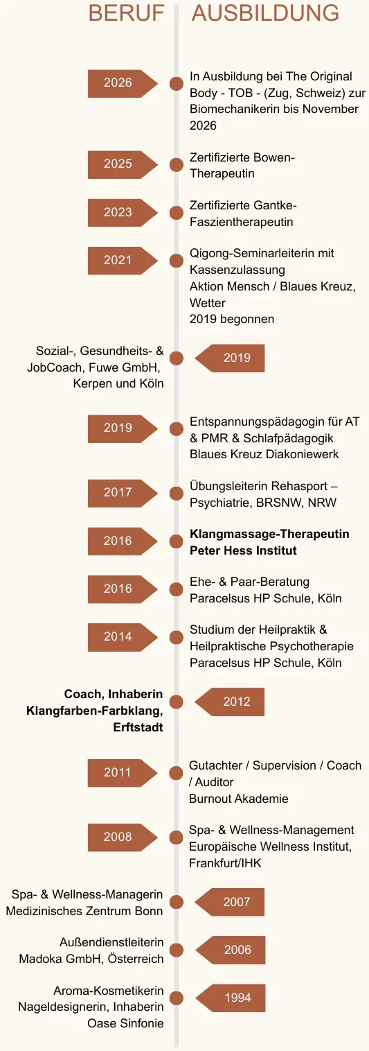 - In Ausbildung bei The Original Body – TOB – (Zug, Schweiz) zur Biomechanikerin bis November 2026